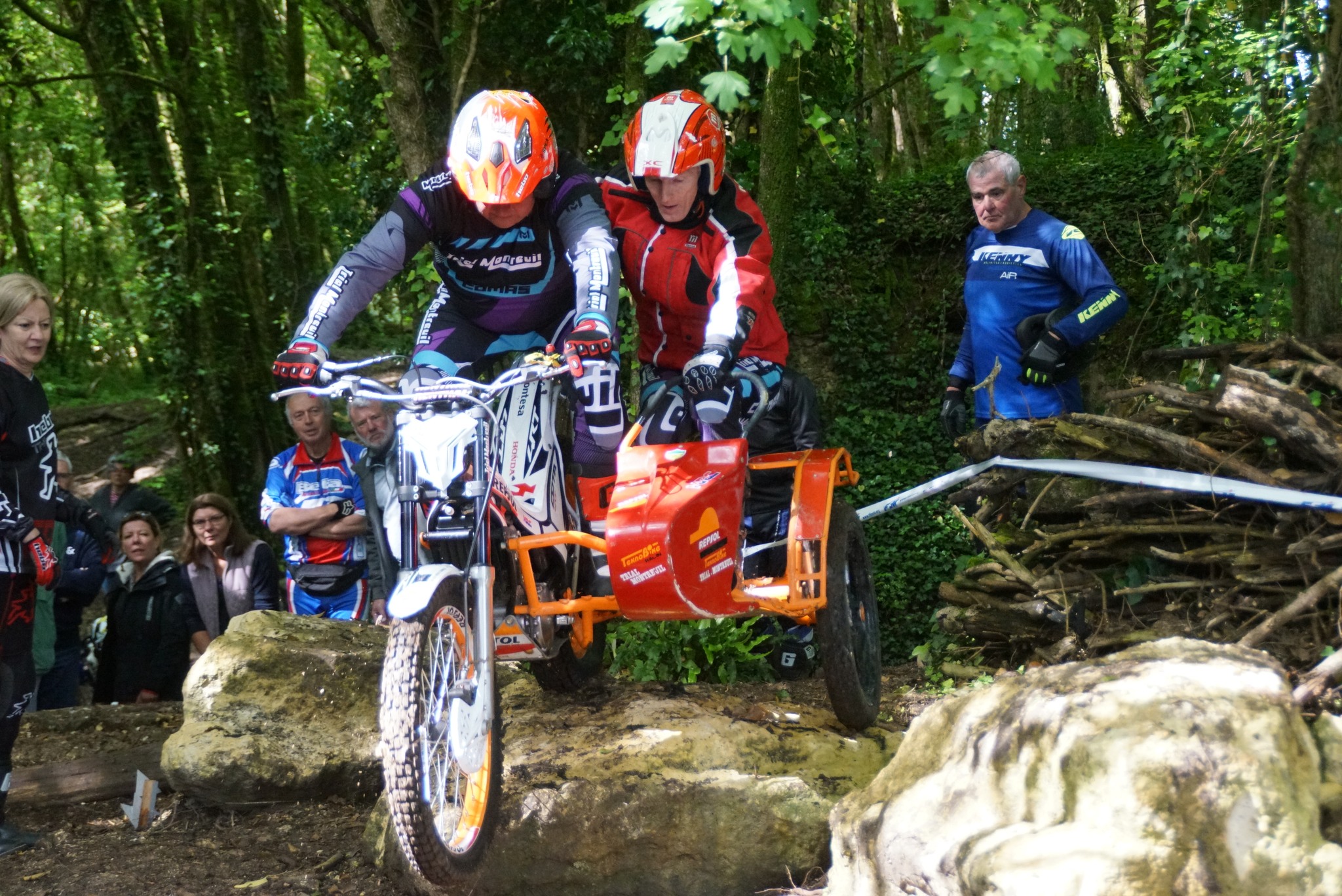 Depuis 2006, quelques pratiquants ont greffés à leur moto un side-car. Ils sont désormais 2 équipages mais ont été jusqu'à 5 équipages (3 locaux et 2 des départements voisins) et comme la majorité des motos « solo »(une bonne trentaine), ils s’entraînent souvent le dimanche matin.